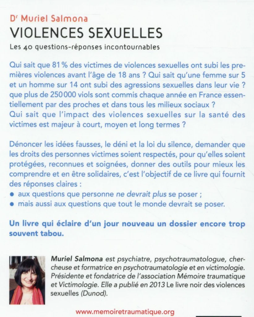 Dr. Muriel Salmona, psychiatre, psychotraumatologue, Présidente et fondatrice de l’Association Mémoire traumatique et victimologie